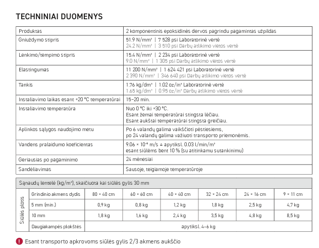 • siūlės gylis – nuo 30 mm